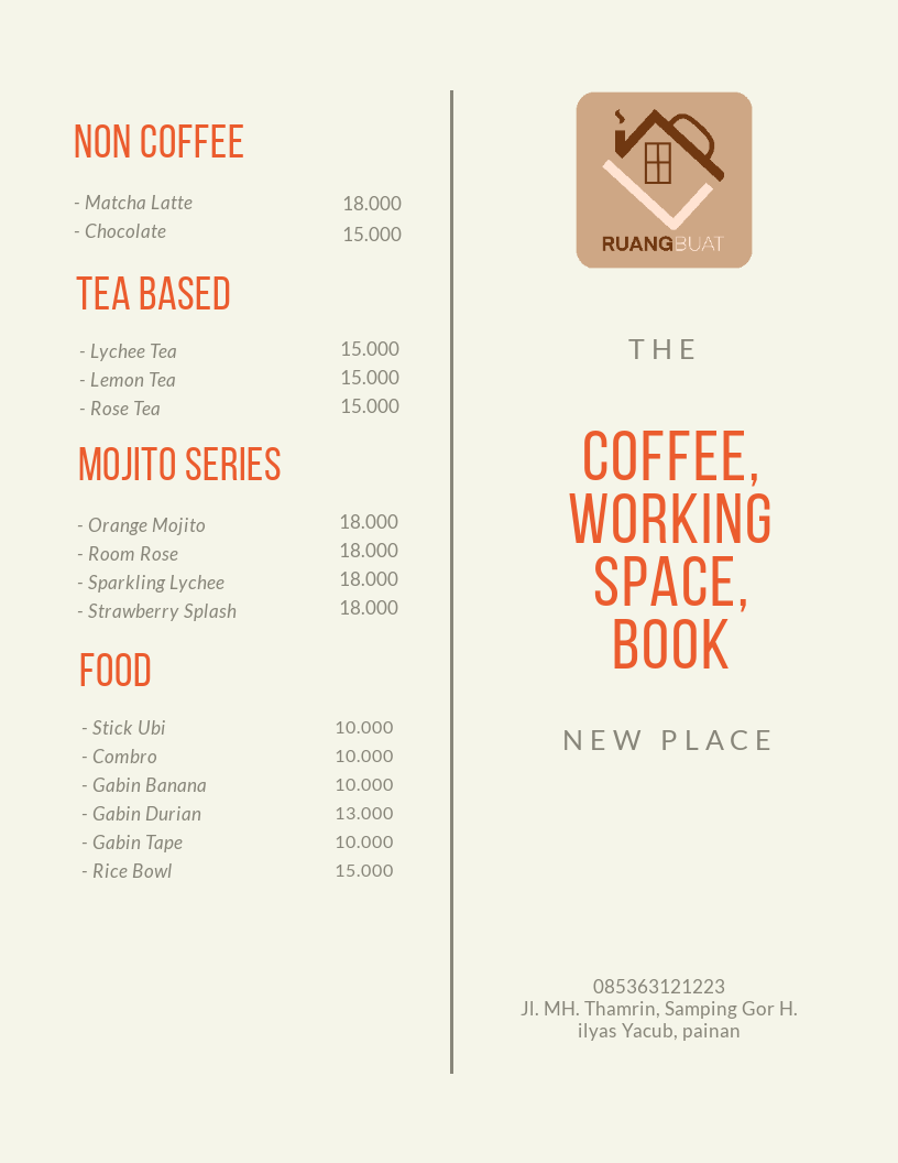 Welcome to Ruang Buat, a hidden gem in Painan, where coffee lovers unite. Nestled on Jl. Perintis Kemerdekaan, this vibrant spot is more than just a café—it's a convivial hangout for friends and families alike. The dedicated baristas craft exceptional brews, from expertly crafted coffee mocktails to creamy fresh milk lattes, ensuring every sip is a delightful experience.